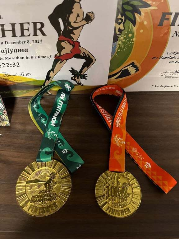 トップ > みんなのホノルルマラソンアルバム > 写真で見る私のホノルルマラソンの思い出 > 昨年メダル はいむるぶし 2025/11/21 13:41 昨年メダル ※ 投稿時、ここにコメントを記載してください昨年の振り返りです グッズコレクション ■何を買った?持ってる? ■ひとこと! 2024完走メダルです。 もっとコレクションを 増やそう!JALホノルルマラソンオフィシャルグッズはこちらから👇※ポイントは記録した月の月末に付与されます いいね 共有する 共有する X facebook LINE リンクをコピー コメントする 1 件の返信 (新着順) ミュートしたユーザーの投稿です。 投稿を表示 Ruby 2025/11/21 17:17 すごいですね~ 2つとは… フルマラソンとハーフマラソン? いいね 返信する ミュートしたユーザーの投稿です。 投稿を表示 はいむるぶし 2025/11/21 21:30 Ruby 右側の10Kは一緒にスタートした妻のメダルです。 いいね 返信する ミュートしたユーザーの投稿です。 投稿を表示 Ruby 2025/11/21 22:45 はいむるぶし なるほど〜(笑) 夫婦揃ってマラソン参加なんてGOODですね~羨ましい笑 いいね 返信する