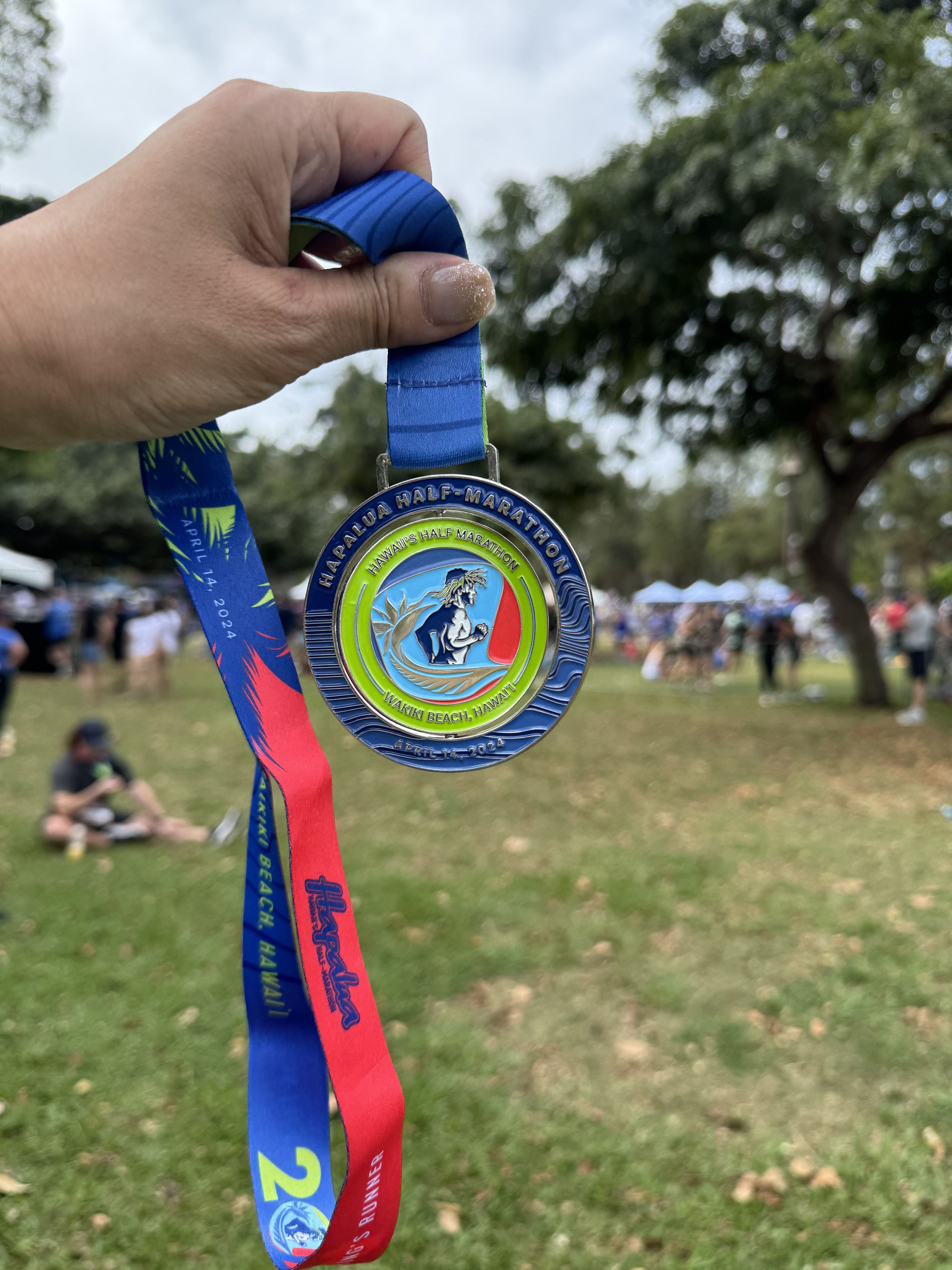 いいですよねこのメダル。私がホノマラに参加した2006年のメダルと大きさはほとんど変わらない気がします。