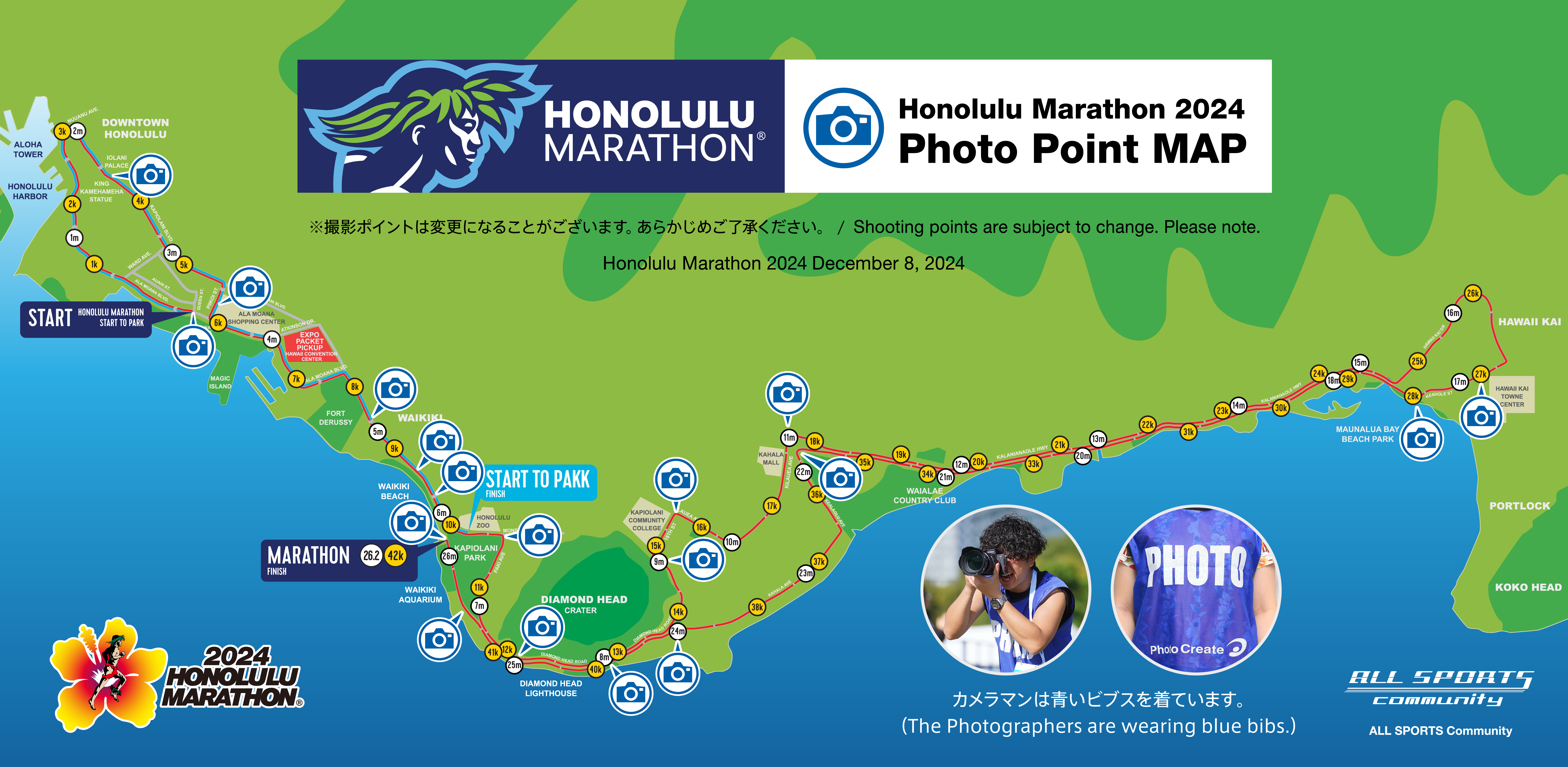 トップ > みんなのホノルルマラソンアルバム > 撮影ポイントマップ|オールスポーツコミュニティ オールスポーツコミュニティ 2024/12/08 16:59 撮影ポイントマップ|オールスポーツコミュニティ オフィシャルフォトサービス、オールスポーツコミュニティです。 カメラマンが撮影しているポイントマップを共有いたします📷 各ポイントにおりますのでぜひぜひカメラマンを探しながら42.195km走破を目指してください!撮影中のカメラマンも皆さまのことを応援しております! カメラマンを見つけたらぜひポーズをとってくださいね♪皆さま、ファイトです! オールスポーツコミュニティ AllSportsCommunity いいね 共有する 共有する X facebook LINE リンクをコピー コメントする 2 件の返信 (新着順) ミュートしたユーザーの投稿です。 投稿を表示 かおり 2025/02/19 09:08 お疲れさまでした〜! いいね 返信する ミュートしたユーザーの投稿です。 投稿を表示 かおり 2025/01/20 08:32 わかりやすくありがとうございます! いいね 返信する