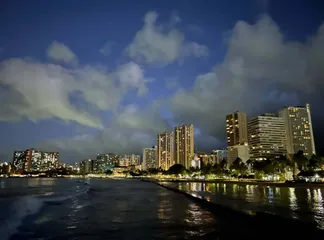 夜のワイキキビーチ ホノルル、ワイキキの夜景 ホノルル気分メモリー■何をしてホノルル気分?ワイキキの夜景の写真を見て、ホノルル気分です!🌈 ■写真をアップして思い出を記録しよう!! ■どんな気分? ■ひとこと!ワイキキは夜も綺麗ですね!😆※前回のホノルルの写真見て、ま