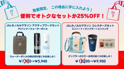 限定セットが25%OFF!オフィシャルショップ ENJOY WEARHOUSE JALホノルルマラソンの魅力を日常に!