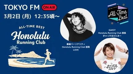 ホノルルで走ることの楽しさ、気持ちよさ、魅力を、ランナーの皆さまにお届けしているTOKYO FM「All-Time Best」内のコーナー「Honolulu Running Club」。3月2日(月)12:35頃~ の放送では、部長のきゃっするひとみーさんが登場。前回、ハパルア参加を決めたLOVEさ
