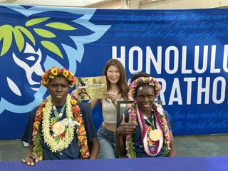 今日から会社に出社をしていますが、まだホノマラの余韻から抜け出せません!とりあえず今週は自分をねぎらって、来週からコツコツ、頑張ります! ところで今回一番うれしかったことはフィニッシャーズマンデーでマラソン選手と一緒に写真がとれたことです。選手と撮れることなんてめったにないので、本当にうれ